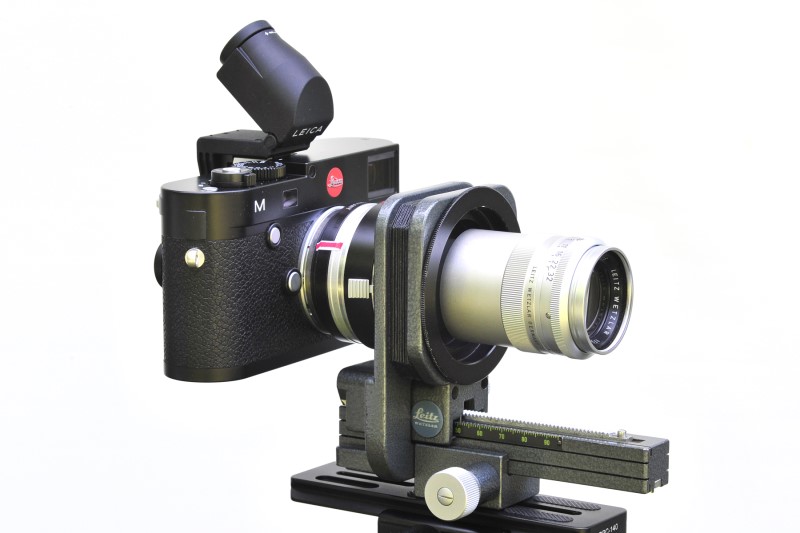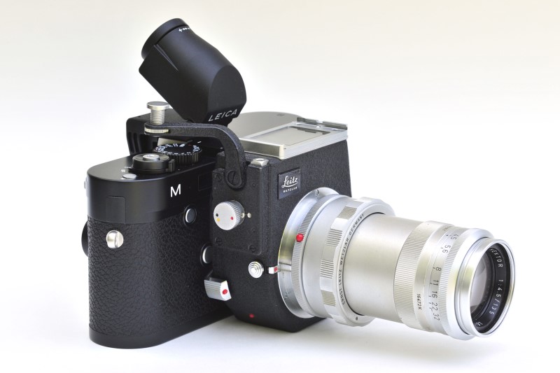You waited a very long time for your new Leica to arrive. Finally it’s here! Of course you will attach modern APO Leica lenses to deliver the extraordinary quality you expect. If you have access to additional lenses and accessories usability of the new M is greatly expanded. Recently I fitted various “optical paraphenalia” to the new camera. Please refer to the following illustrations. Bellows units and long focal lengths are best employed with solid tripod support. The EV2 electronic viewfinder can be thought of as a “baby Visoflex”. Addition of the EV2 basically converts the Leica M into an SLR. Presently the new Leica R to M adapter is in preparation with delivery expected shortly.