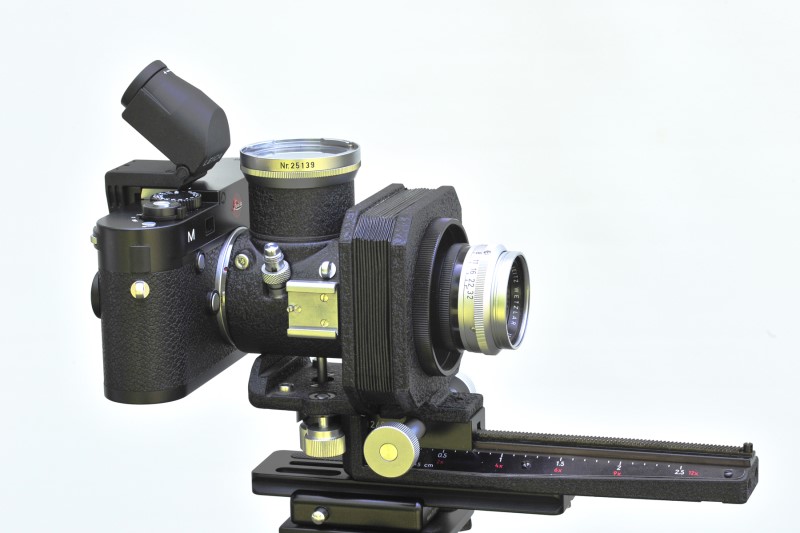 ![]() Visoflex I as spacer (mirror up), Bellows I with 135mm Hektor, EV2 at 45 degrees. |